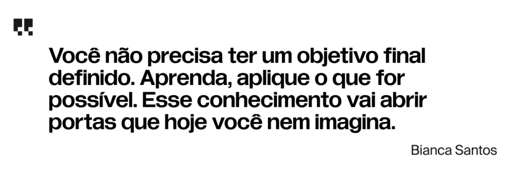 Portanto, a jornada de Bianca pode mostrar que a transformação profissional não exige certezas absolutas: apenas disposição para aprender e se permitir explorar possibilidades.