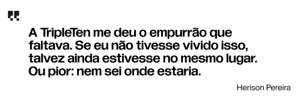 “A TripleTen me deu o empurrão que faltava. Se eu não tivesse vivido isso, talvez ainda estivesse no mesmo lugar. Ou pior: nem sei onde estaria”.