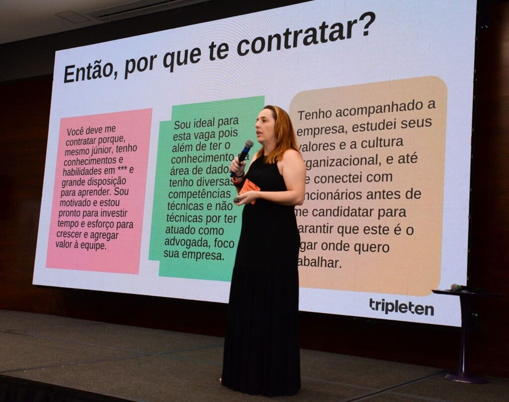 Já a Luiza compartilhou a importância de criar uma rede de contatos para conseguir emprego rapidamente e falou também da importância de ter atitude e demonstrar interesse pela empresa ao participar do processo seletivo.
